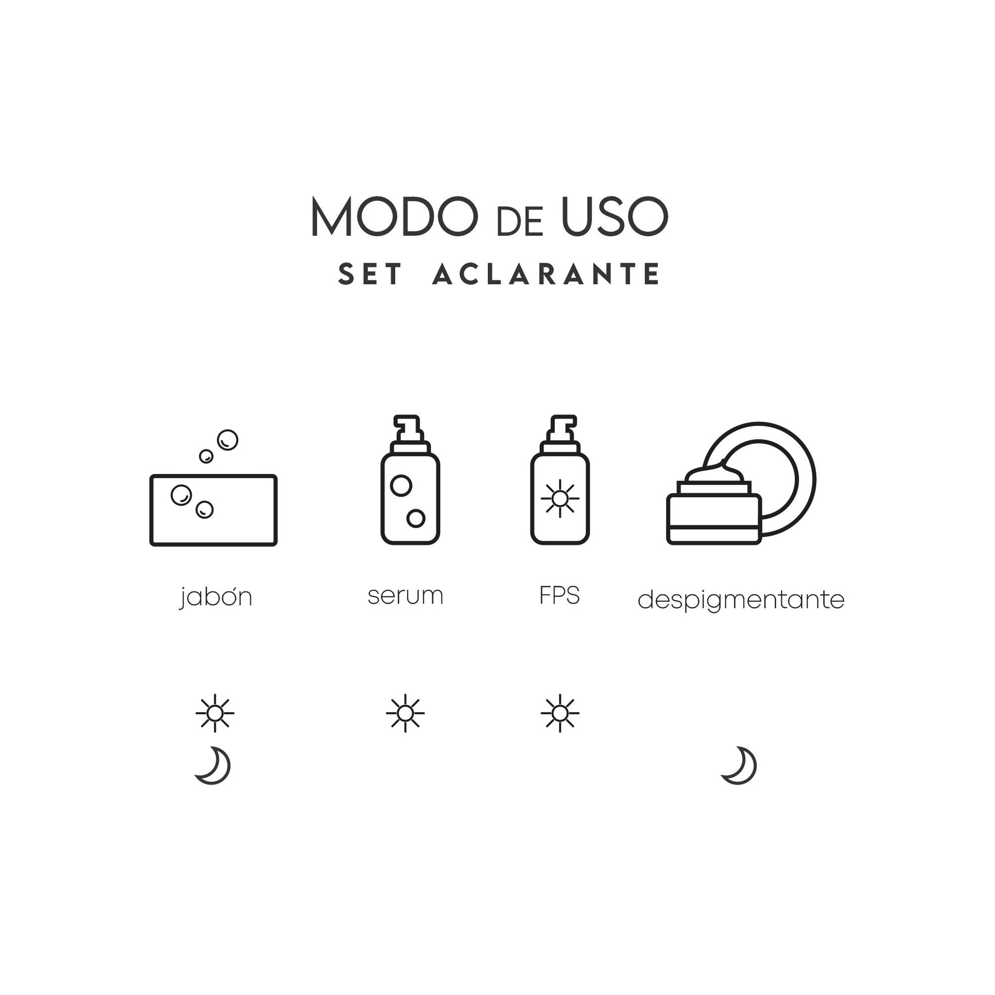 ¡Transforma tu piel con nuestro set Aclarante! Logra un tono uniforme, disminuye las manchas y previene la aparición de nuevas. Formulado con ingredientes naturales para una piel radiante. Destaca tu belleza natural y siente la confianza en ti.