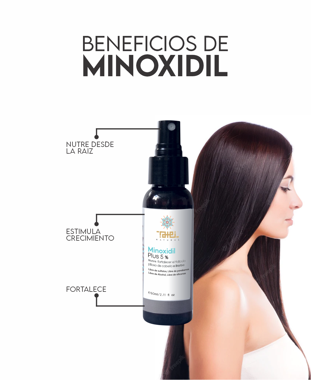 Loción con Minoxidil, Biotina, keratina ,colágeno y pantenol para nutrir y fortalecer el folículo piloso, en cabello o barba